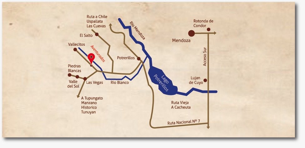 - A 80 km de la ciudad de Mendoza. A 47 km de Uspallata y a 37 km de Chacras de Coria. El aeropuerto más cercano es el de El Plumerillo, ubicado a 48 km del lodge.